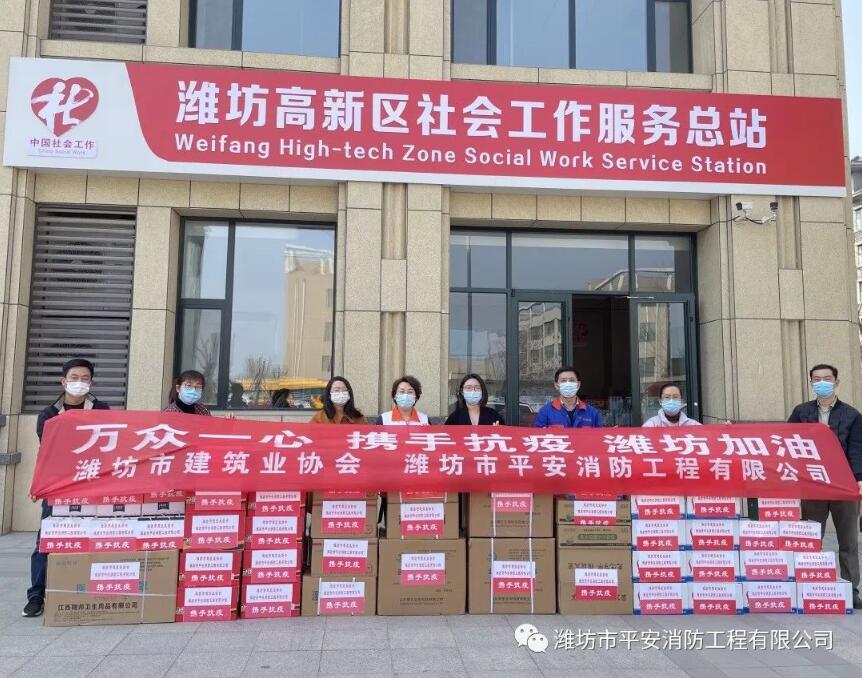 近日,我市疫情防控形式嚴(yán)峻,為全力支持疫情防控工作,以強(qiáng)烈的責(zé)任感、使命感和政治擔(dān)當(dāng),發(fā)揚(yáng)“一方有難,八方支援”的優(yōu)良傳統(tǒng),我公司積極采購抗疫物資和生活物資,攜手濰坊市建筑業(yè)協(xié)會(huì)、濰坊市志愿服務(wù)聯(lián)合會(huì)、高新區(qū)社會(huì)工作服務(wù)總站將防疫物品捐贈(zèng)到抗疫前線中,為我市抗疫工作奉獻(xiàn)愛心,貢獻(xiàn)企業(yè)力量。